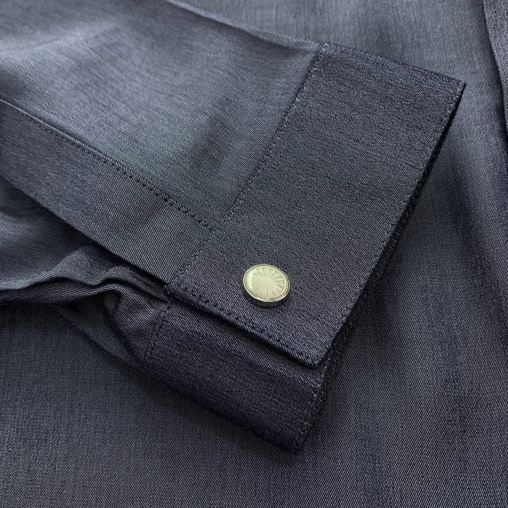 - High-quality snap buttons at the top of the placket and cuffs